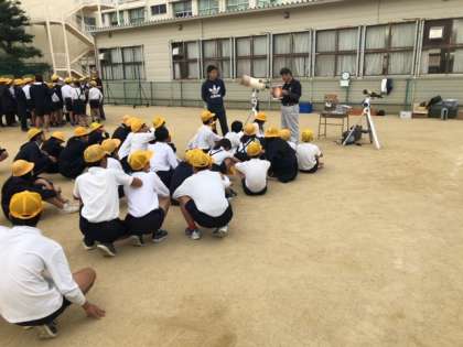 6年生が理科の「月と太陽」の学習をしました。5時間目は、月と太陽の話を聞き、6時間目は望遠鏡で太陽や月の観察をしました。残念ながら、天候に恵まれず、途中から観察できなくなりました。しかし、大きな望遠鏡を体験したり、きれいな天体の写真を見たりして、興味を深めることができました。