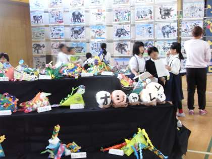 11月14日(木)、作品展が始まりました。力のこもった作品の勢ぞろい。今日が初日ですが、保護者の方や地域の方も、たくさん鑑賞に来てくださいました。