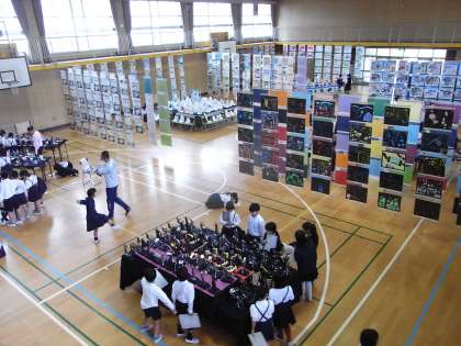【写真上】生涯学習ルームの皆様の作品「パッチワーク」