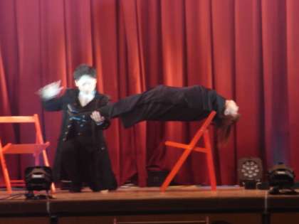 人が浮いたり、大蛇が現れたり。大興奮のマジックやスピィーディーなジャグリング、時にはステージを飛び出して、フロアにいる子どもたちの真ん中でもパフォーマンスが繰り広げられました。ラストまで大いに盛り上がりました。