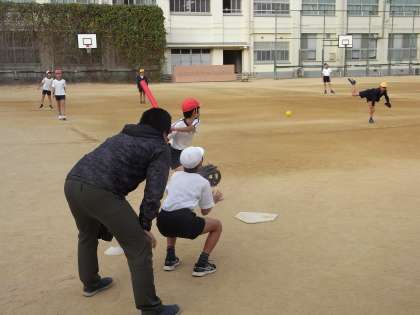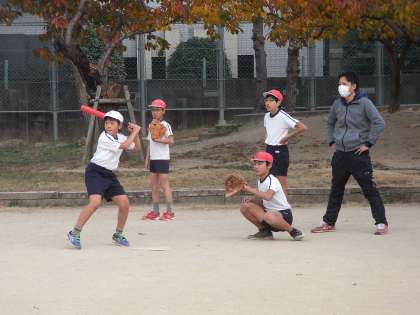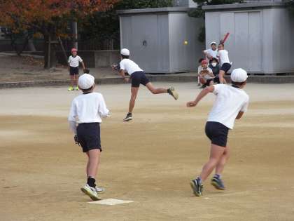 11月26日(火)、6時限目はクラブ活動でした。陸上・球技クラブでは、野球をしました。ピッチャーの速い球に、バッターも打ちあぐねていました。