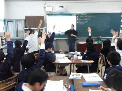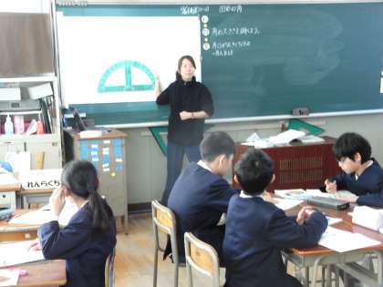 12月12日(木)、5年生は、算数科で、二等辺三角形を基に,三角形の3つの角の大きさのきまりを調べました。そして、二等辺三角形では3つの角の大きさの和が180度であることを確認しました。