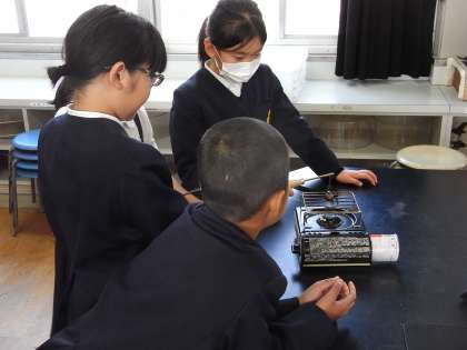 12月23日(月)、4年生は理科の学習で、実験を通して、金属はあたためると体積が大きくなり,冷やすと体積が小さくなることを学びました。