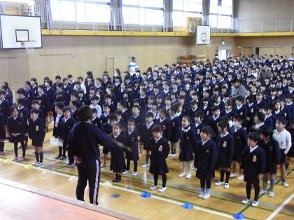 始業式では、まず校長より、「3学期は、4月の進級・進学に備えて、目標をもってしっかり準備をしておきましょう」と話がありました。