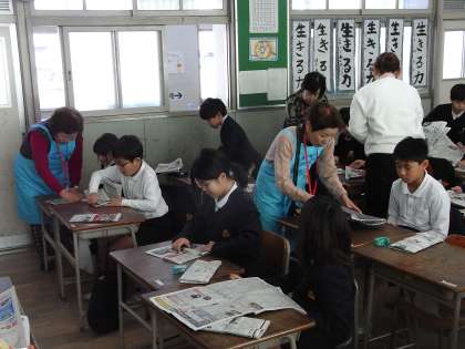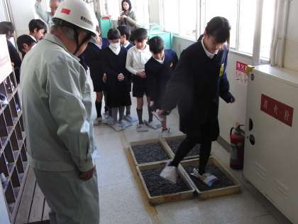 3年 防災学習 《新聞紙スリッパ作成、歩行体験》