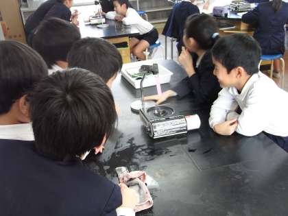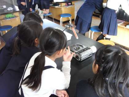 2月4日(火)、4年の理科の学習では、試験管に入れた水を下から熱したときに、どこから温まるのかを実験を通して調べました。試験管の中の水の熱さを知るのに、示温テープや示温水を使って、色の変化を見ました。