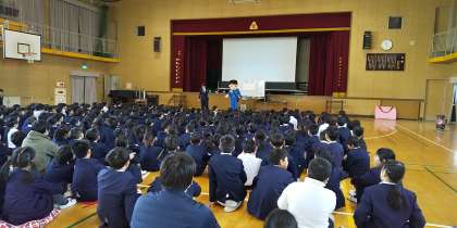3時限目、1年生から3年生対象に防犯教室が開催されました。