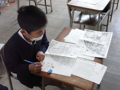 続いての分団集会では、新年度からの集団登校の際の集合場所や集合時刻の確認、また、新1年生が所属予定の分団は、集団登校についての手紙を書きました。【写真上】