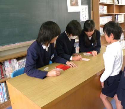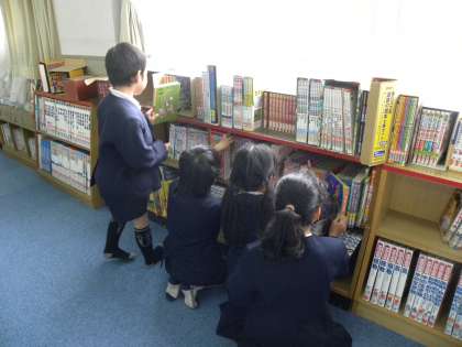 朝の時間を全校読書タイムにして本を読んでいます。20分休憩時間には児童の図書委員さんが図書室を開放しています。