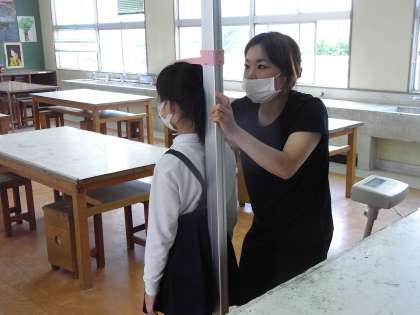 4年生は、発育測定をしました。いつもと違って、保健室の2倍もある広い図工室を使って、身長と体重を測定しました。