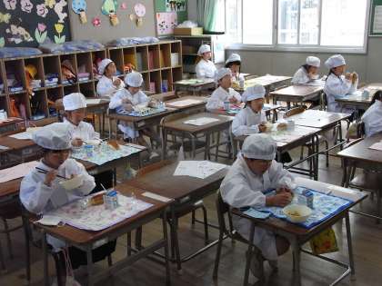 給食もこの日から始まりました。6月12日(金)までは、午前の部と午後の部に分かれた分散登校となっており、衛生管理基準に基づく通常の給食を調理することができません。
