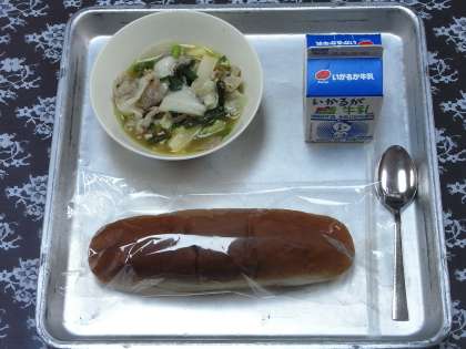 6月9日(火)、今日の給食のメニューは、「黒糖パン、牛乳、中華煮」でした。