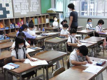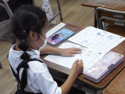 6月10日(水)、1年生は国語の学習で、ひらがなの「ね」と「な」を練習しました。プリントに一字一字ゆっくり丁寧に書きました。
