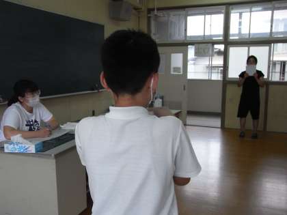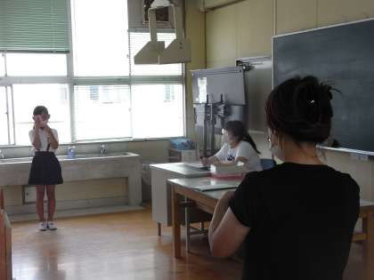 6月12日(金)、4年生は視力検査をしました。片目をハンカチで覆って、ランドルト環の切れ目を見分けました。