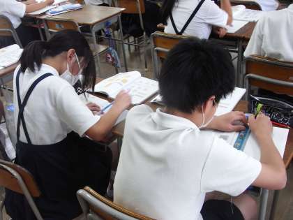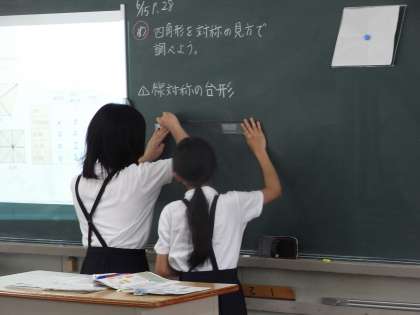 6月15日(月)、6年生は算数科の学習で、正多角形を線対称や点対称の観点から調べました。