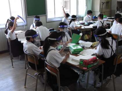 6月16日(火)、4年生はフェースシールドをつけて、グループ学習(活動)をしました。