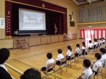 6年生からは、学校紹介のビデオによるプレゼントがありました。学校には、いろいろな教室があることがわかりました。6年生のやさしさや思いやりの気持ちが感じられるビデオでした。これをきっかけに、1年生と6年生のきずなが深まっていくことでしょう。