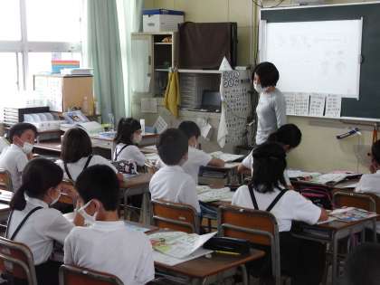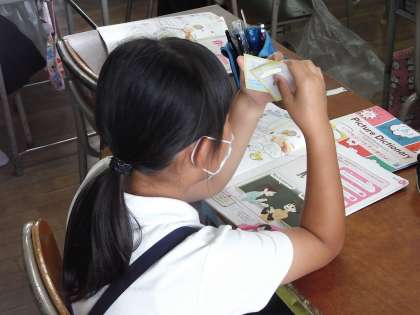 6月29日(月)、5年生の外国語科では、好きなもの・ことを友だちとたずね合ったり,「名刺カード」を作り,交換したりしました。