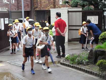 本校では、本年度土曜授業を全学年で5回実施する予定です。今日7月4日(土)は、その第1回目です。4時間授業を行い、4時限目に地震発生を想定した保護者への引き渡し訓練を行いました。