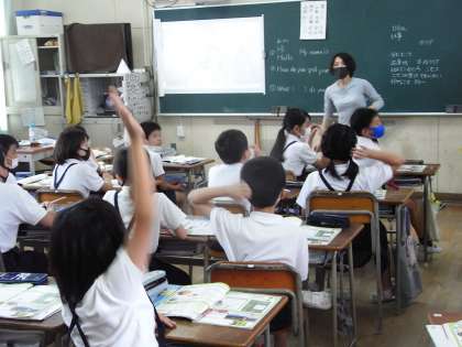 7月6日(月)、5年生は外国語科の学習で、世界の名前や,英語と日本語の違いについて考えました。