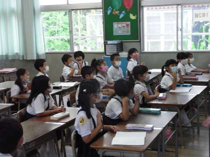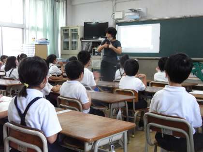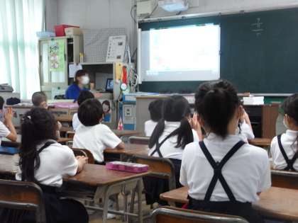 毎週火曜日と木曜日の朝は、「小学校低学年からの英語教育」短時間学習の時間です。1年生もDVDを見ながら、「A、B、C、・・・」と発音しました。