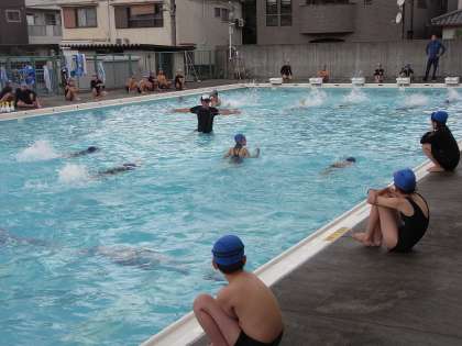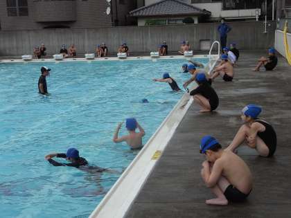 7月15日(水)、気温24.5度、水温23.5度と、気温も水温も低い中でしたが、いよいよ水泳学習が始まりました。