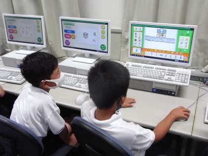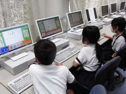 8月3日(月)、3年生がパソコン教室でお絵かきソフトを使って、思い思いの作品を作りました。スタンプ機能を使ったり、マウスを使って手描きの絵を描いたり、それぞれに工夫していました。