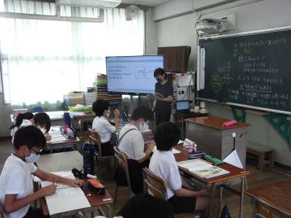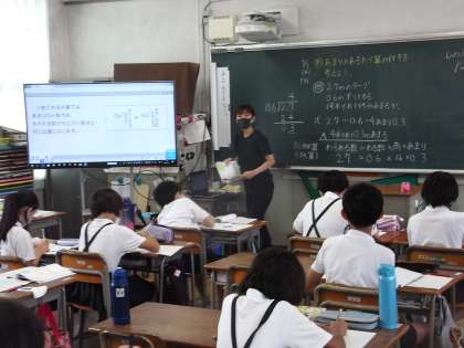 9月3日(木)、5年生は、下の問題を通して、あまりのあるわり算の仕方を考えました。