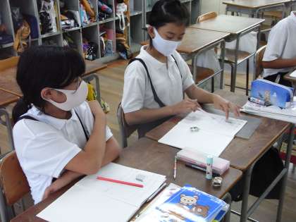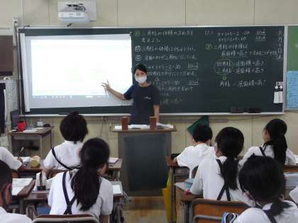 9月9日(水)、6年生は算数科で、三角柱の体積は(底面積)×(高さ)で求められることを学習しました。