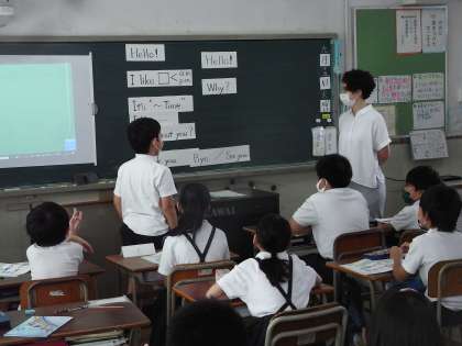 9月15日(火)、4年生は外国語活動の時間に、自分の好きな時間について,尋ねたり答えたりして伝え合いました。