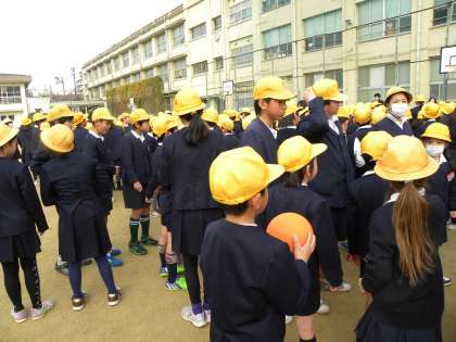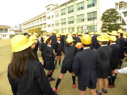 今日の児童集会は音楽をかけながらボールをまわし、音楽が止まった時にボールを持っていた人が負け、というボール運びゲームでした。きょうだい学級で仲良くボールをまわしました。寒い朝でしたが元気に運動場に出て活動していました。