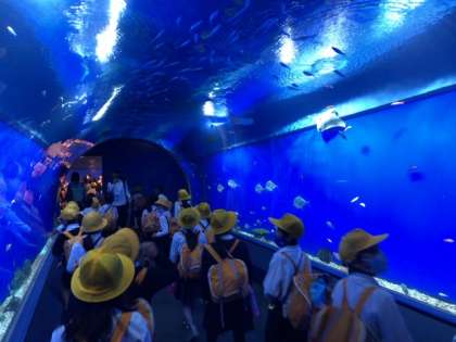 10月9日(金)に3年生が校外学習として海遊館に行きました。海遊館ではさまざまな海の生き物を見ることができ、子どもたちは興味津々で見学していました。また、セミナーではイルカやアシカなどの海獣についての話を聞きました。マスクの着用やお弁当を食べる際の向きなど、新型コロナウイルス感染症対策にも気をつけながら活動することができました。