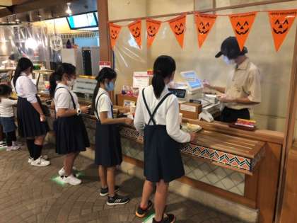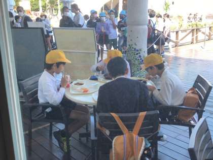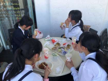 グループごとにミールクーポンを使って好きなメニューを選んで昼食を味わいました。