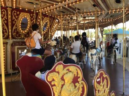 活動グループごとにさまざまなアトラクションに乗っています。