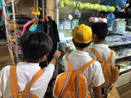 もおもいうかべながら見学しています。また、混み具合を考え、先にお土産を選ぶグループもいます。