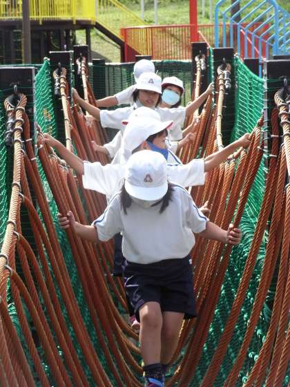 とりで広場には、お城やとりでなど、子どもたちの夢と想像力を育む遊具がいっぱいありました。