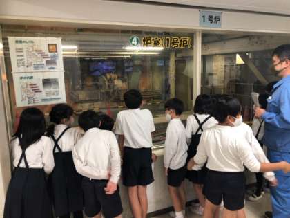 4年生はクラスごとに鶴見工場に社会見学にいきます。本日は、1組が見学に行きました。工場内では、集められたゴミがどのように処分されていくのか動画を見ました。その後、工場内を実際に見学させてもらいました。ゴミの学習を通して、環境のことを考えるきっかけになってほしいです。