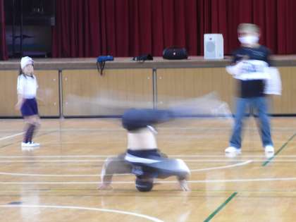 11月2日(月)、大阪を拠点に国内外を問わず数々のブレイクダンスの大会で輝かしい成績を残し続けているチーム“Mortal combat”のオリジナルメンバーとして、活躍されておられるBboy(ブレイクダンサー)のKAKUこと角谷直人さんにお越しいただきました。後頭部ヘッドスピンや20回転を超える 2000(ツーサウザンド/両手で倒立した状態で回転する技)は、世界でKAKUさんにしかできないオリジナルの大技だそうです。