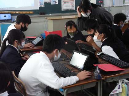 11月5日(木)、この日は、校内すべてのクラスでプレゼンテーションをして協力を呼び掛けるため、その資料作りに取り組みました。