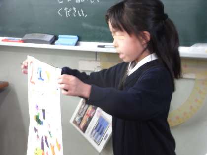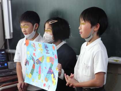 今日は、3年生と2年生が遊びコーナーの紹介をしてくれました。3年生は「クイズ」です。そして、2年生は「ふくろロケット」です。