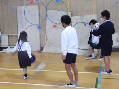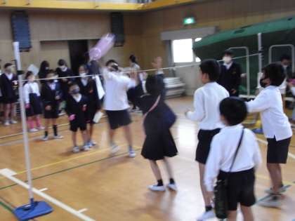 「風船バレー」:風船を落とさずに続けました。