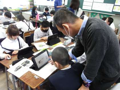 11月10日(火)、5年生は、自動車会社のホームページなどから情報を収集し、消費者や社会の要望に応える自動車開発について、以下の4つのグループに分かれて、プレゼンテーション資料としてまとめました。
