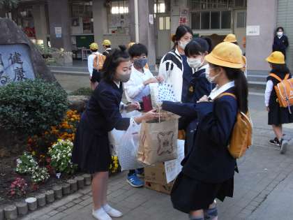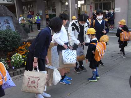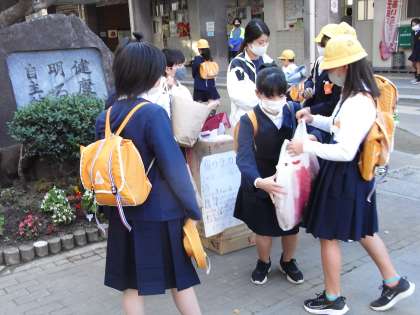 11月17日(火)、6年の「『服のチカラ』プロジェクト」古着回収の2日目です。この日もたくさんの古着が集まりました。みなさん、ありがとうございます。