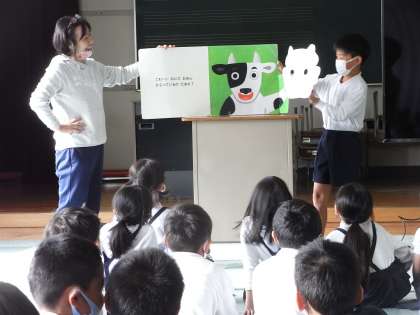 11月17日(火)から25日(水)まで読書週間です。20分休憩の時間には、多目的室で図書委員による絵本の読み聞かせや大型テレビを使っての紙芝居をします。また、給食時間中は、図書委員が放送でおすすめの本の紹介をします。