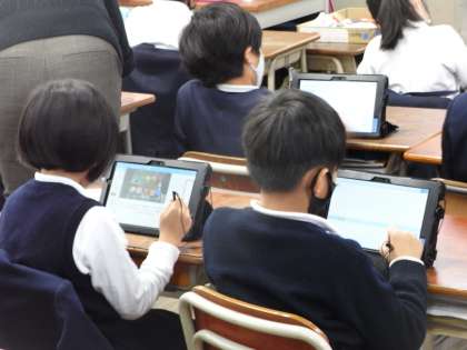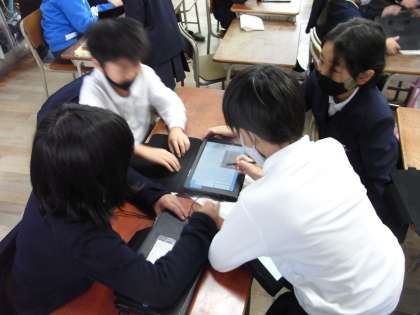 11月30日(月)の活動では、タブレット端末を使って、取材したことを記事にし、写真を貼り付けたり、見出しをつけたりしました。
