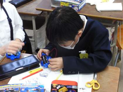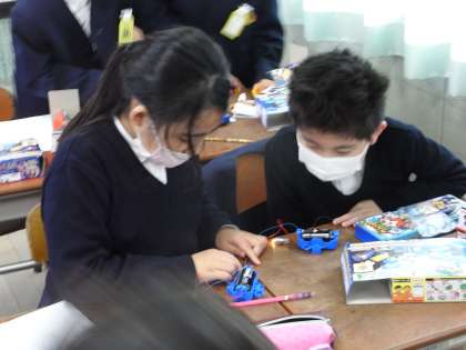 12月14日(月)、3年の理科では、回路の途中に硬貨やアルミホイルなどをはさんだ時の豆電球の点灯の様子から、どんなものが電気を通すのかを調べました。