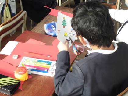 12月21日(月)、3年生は画用紙でおしゃれなクリスマスブーツを作りました。