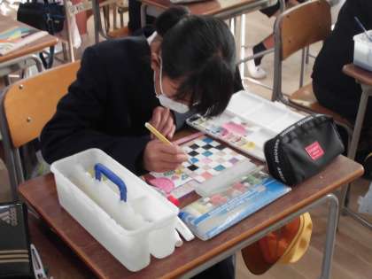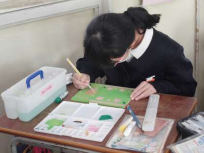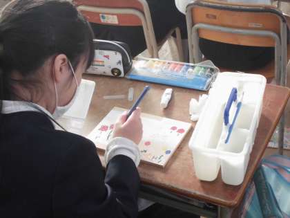 6年生は図画工作科で「フォトボード」を作っています。水彩絵の具でていねいに色を付けています。さて、ここに何を貼りますか?