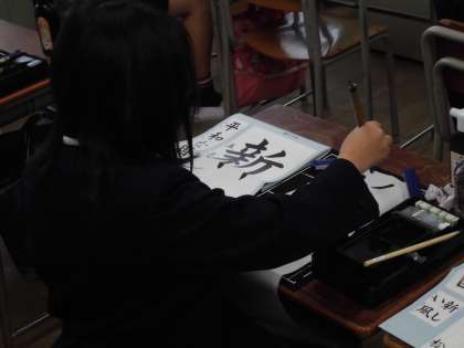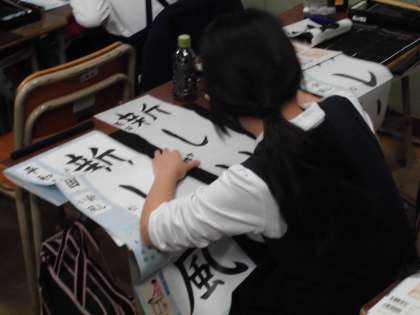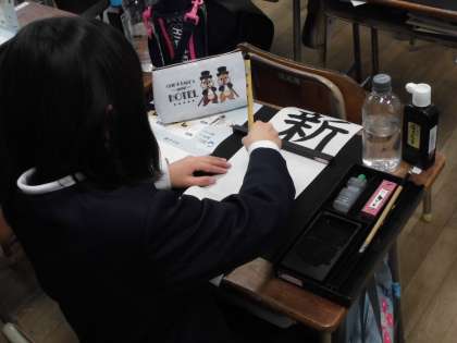 1月7日(木)、5年生は書写で書き初めをしました。手本を見ながら、『新しい風』を書きました。さあ、のびのびと書けたかな。