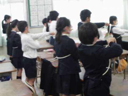 4年生は、「巻き結び」・「本結び」・「もやい結び」という3種類のロープの結び方を学びました。